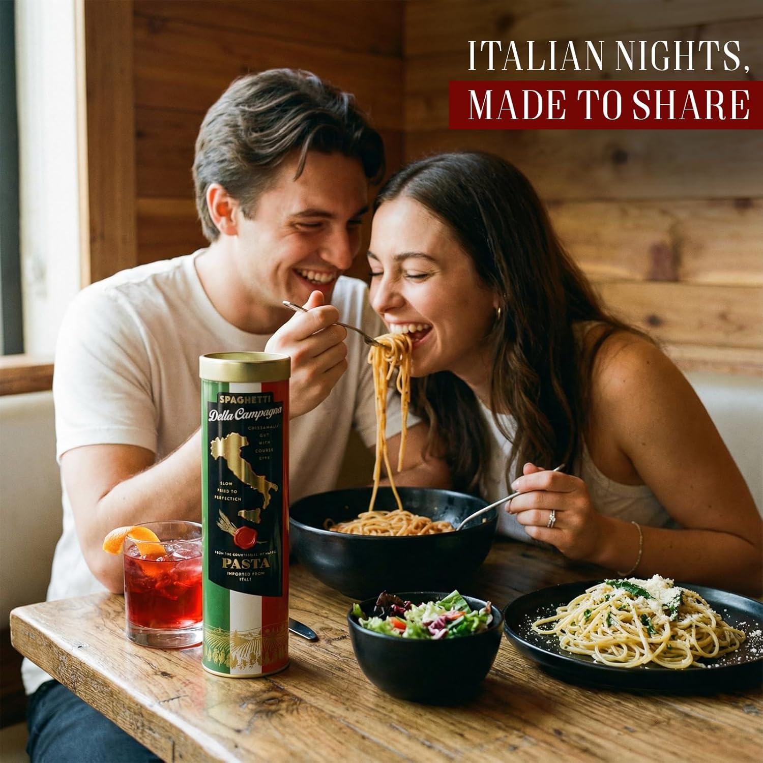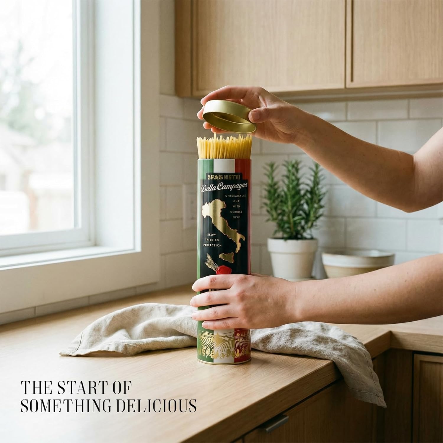 - Tin Packaging – Packed in a sturdy tin that helps protect the pasta and makes it suitable for pantry storage or gifting.