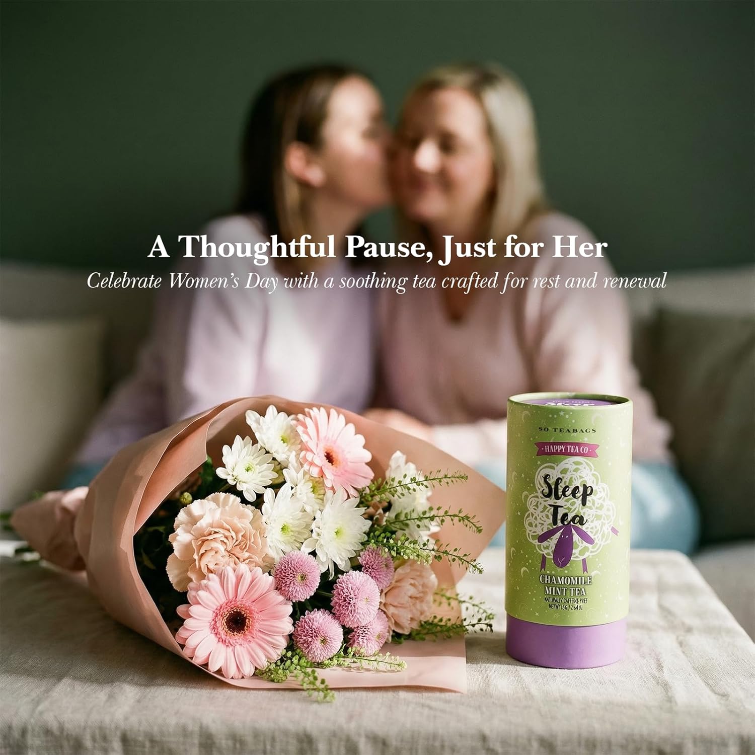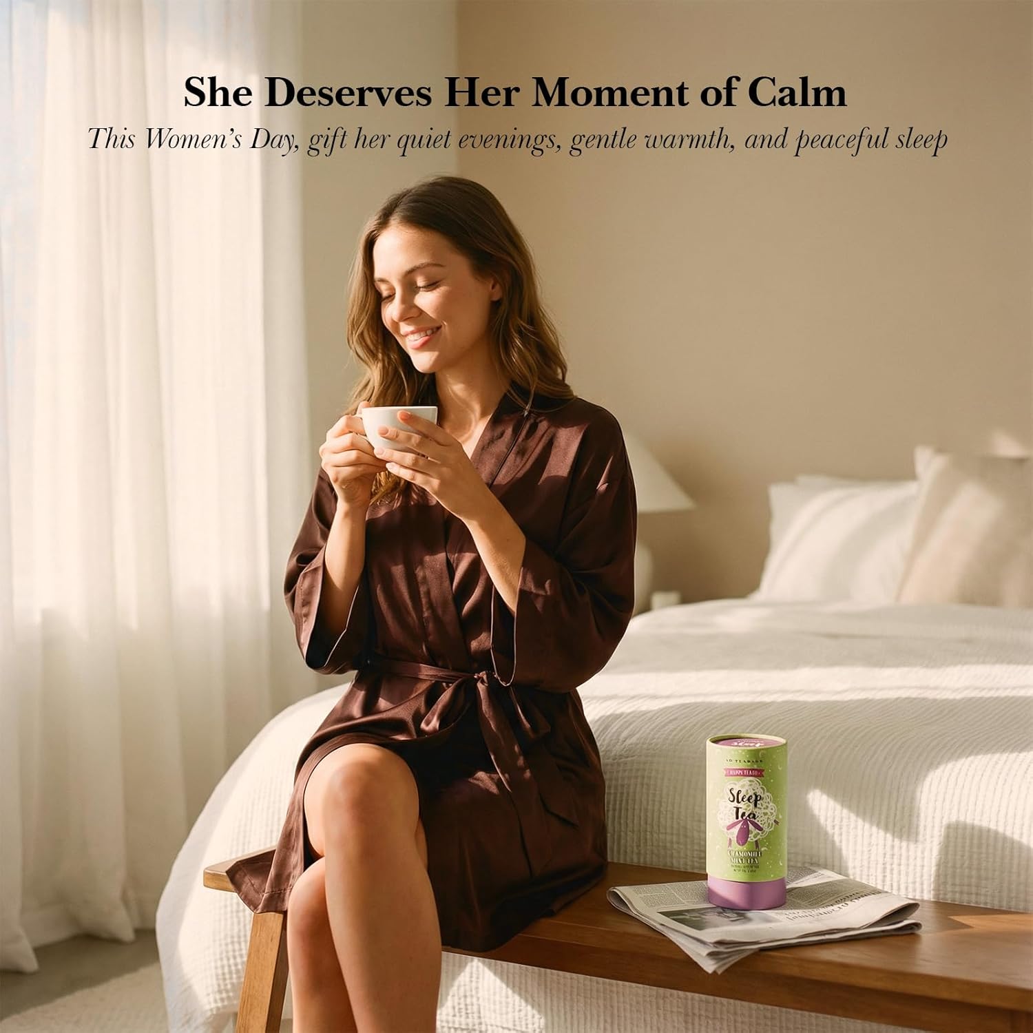 TEA FOR RESTFUL SLEEP - A calming herbal sleep tea made with chamomile and peppermint, suitable for enjoying as part of your nightly routine.