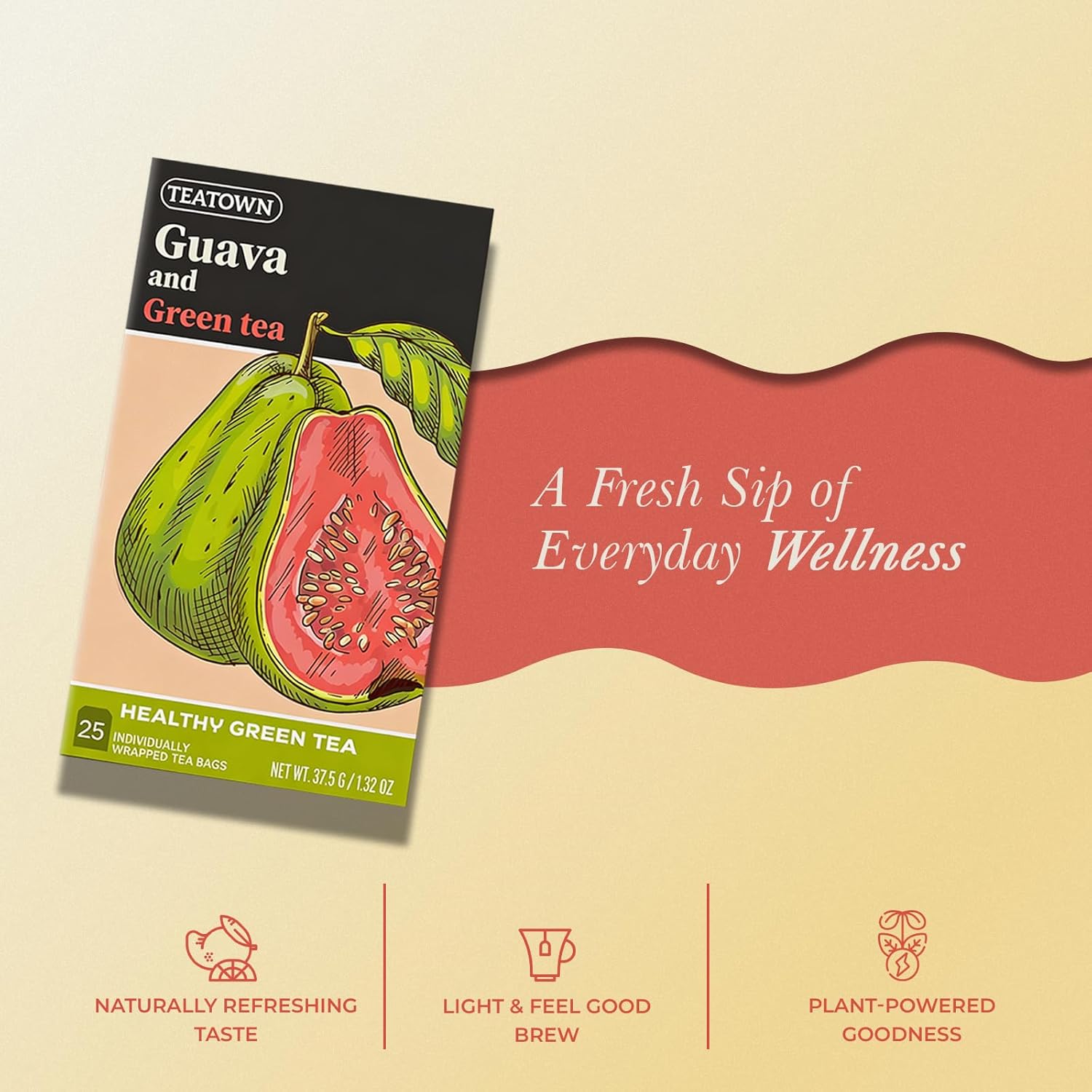A fragrant, fruity fusion of green tea and guava for a refreshing taste.
