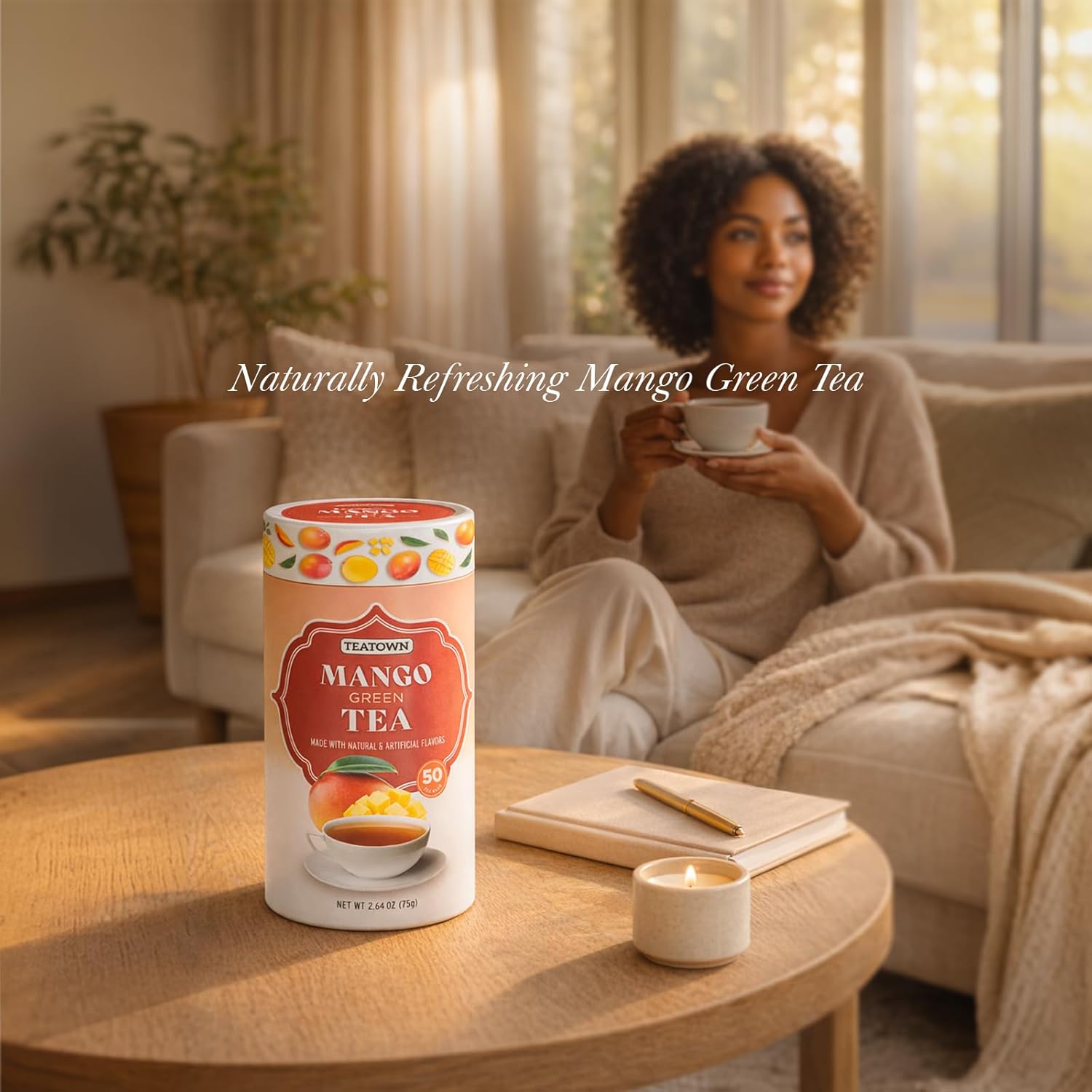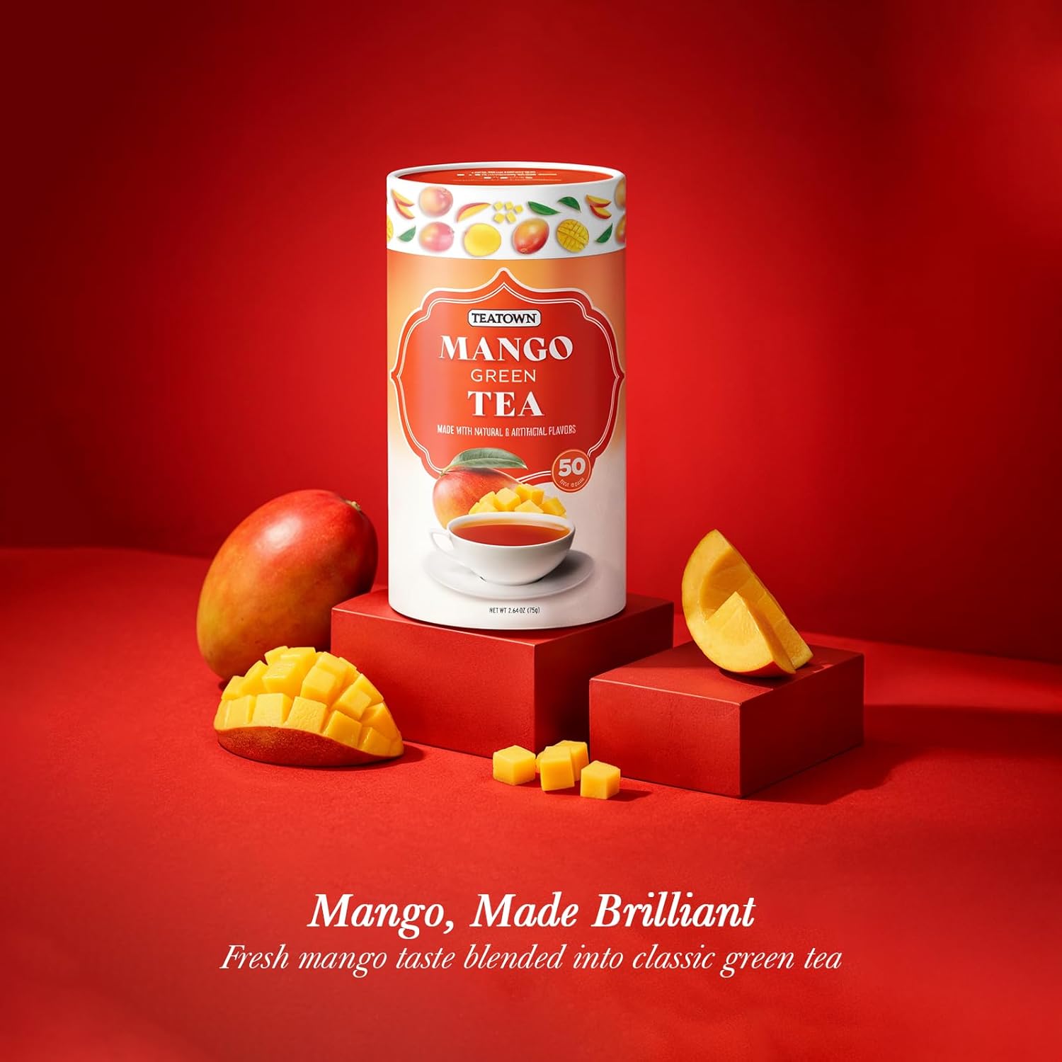 • CAFFEINATED MANGO GREEN TEA - Caffeinated mango green tea designed for those who enjoy a classic tea profile with a touch of fruity flavor for everyday use.