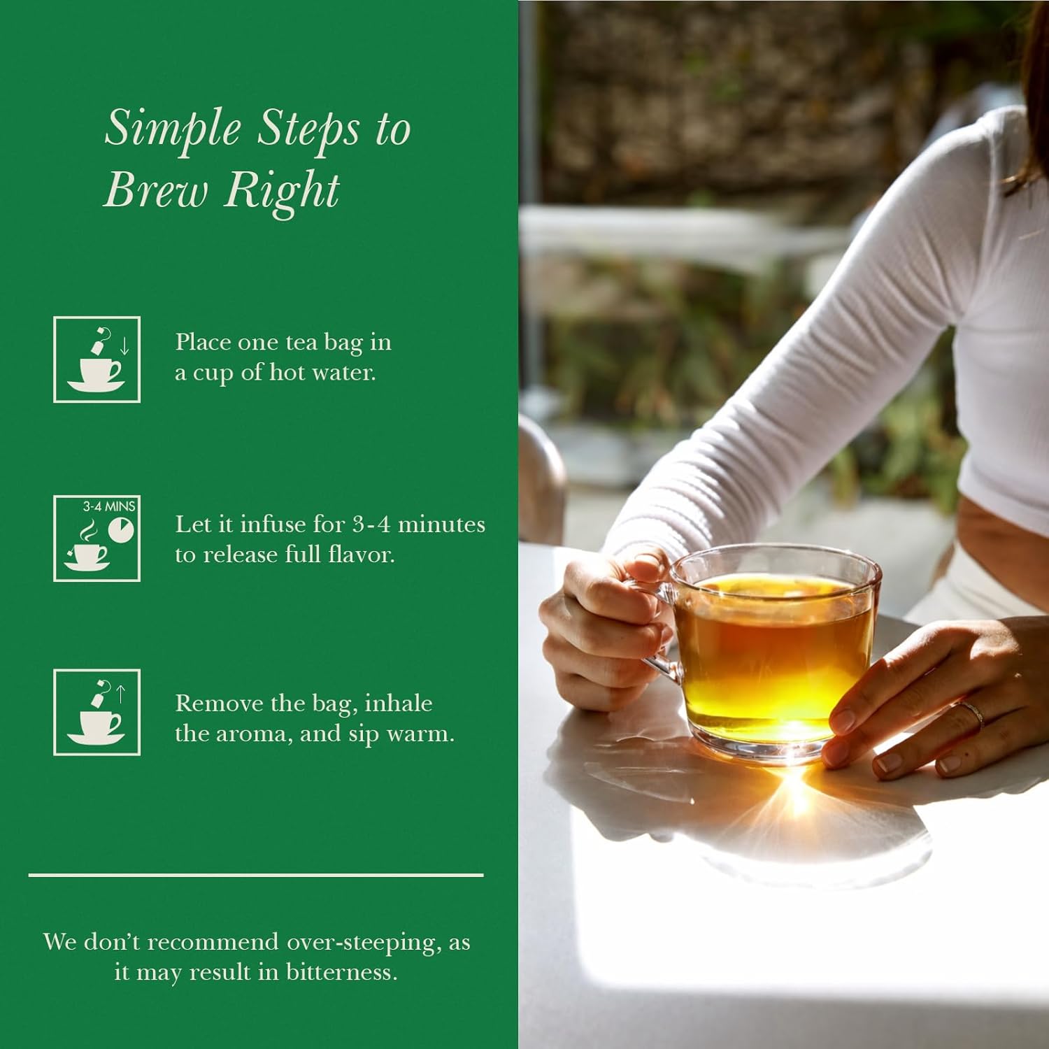 - 50 ECO CONSCIOUS TEA BAGS – Comes with 50 tea bags presented in eco conscious packaging, offering a convenient option for everyday brewing at home, work, or anywhere.